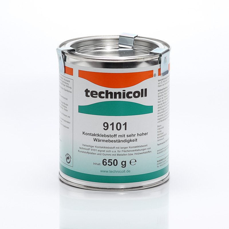 Adesivo a contatto multiuso con tempo aperto lungo. technicoll® 9101 è consigliato per incollaggio di superfici piani come panelli in plastica e gomma con metallo e legno. Materiali incollati con technicoll® 9101 mostrano un’ottima resistenza al calore fino a +130 °C (testati secondo la norma DIN 53273).